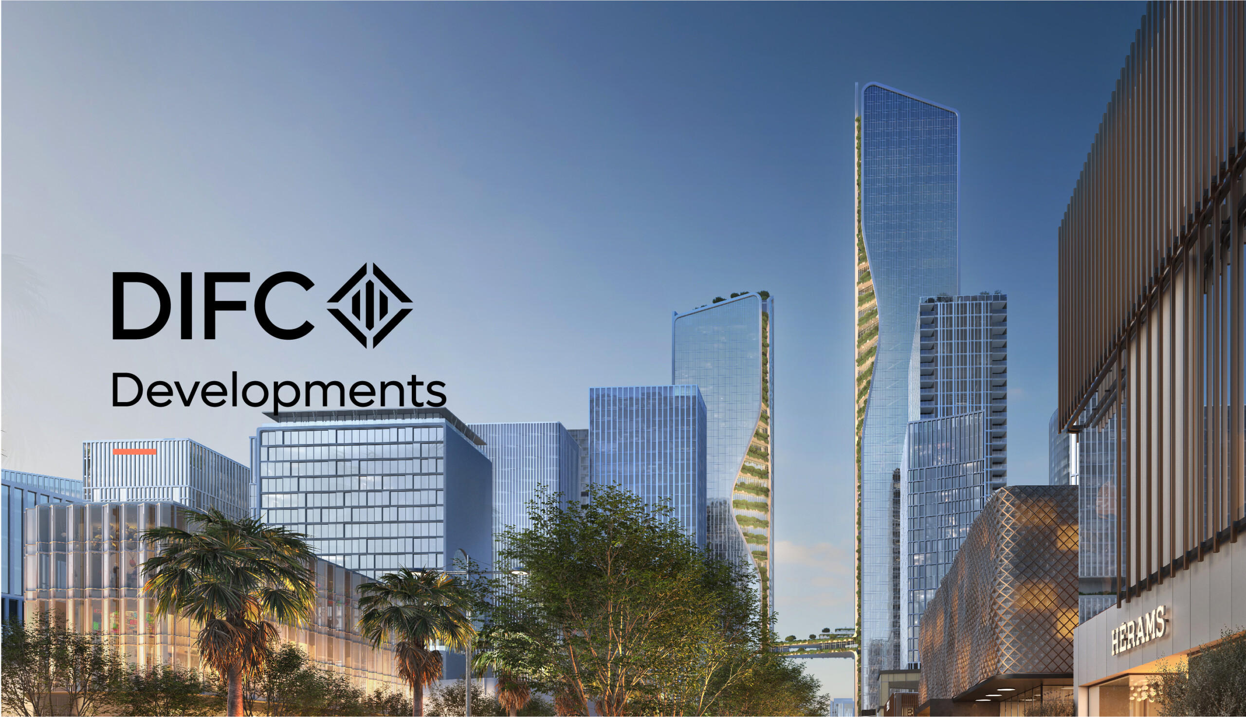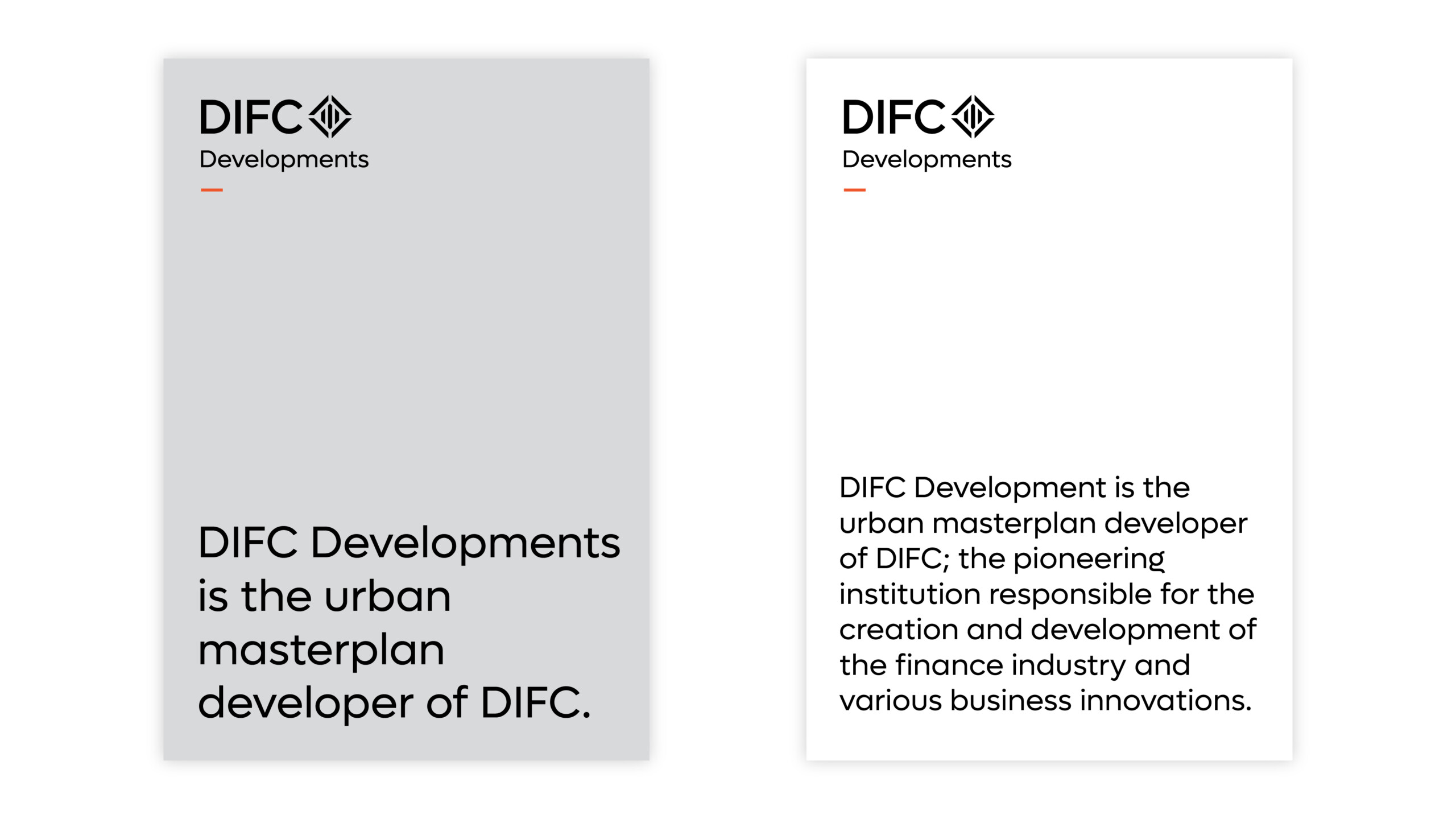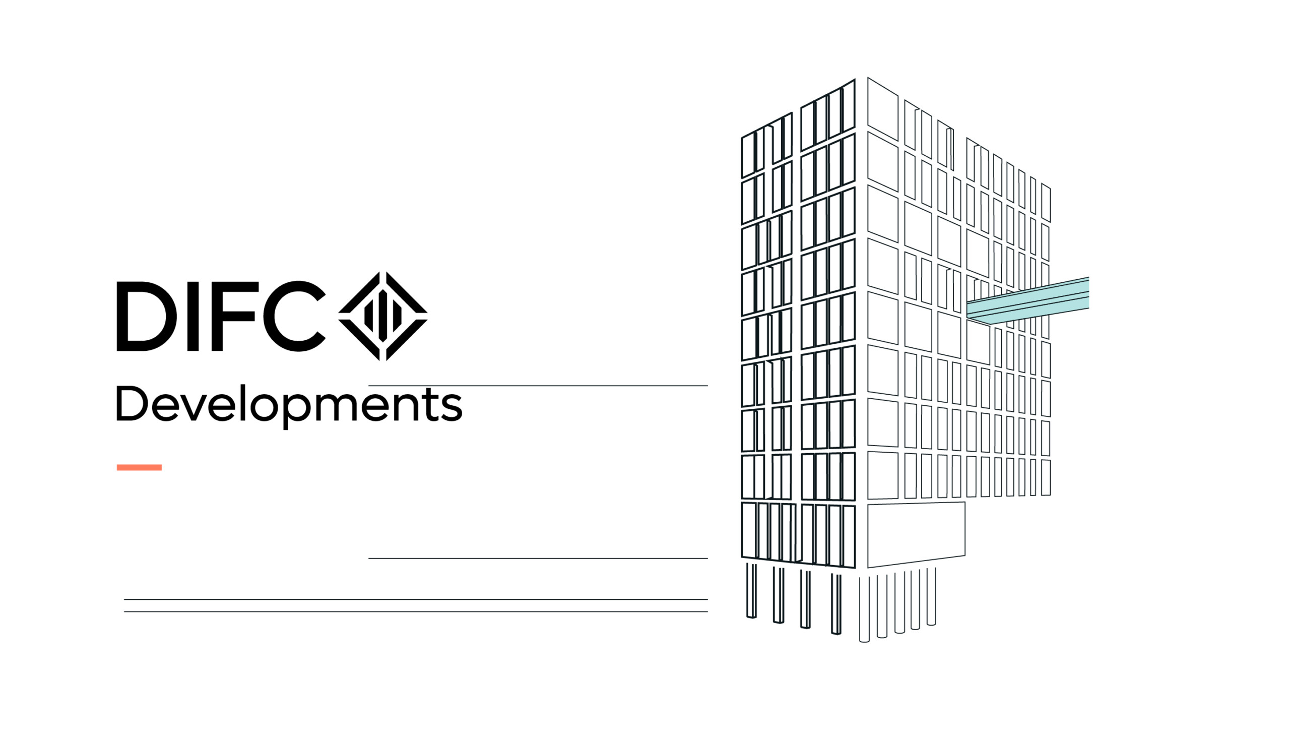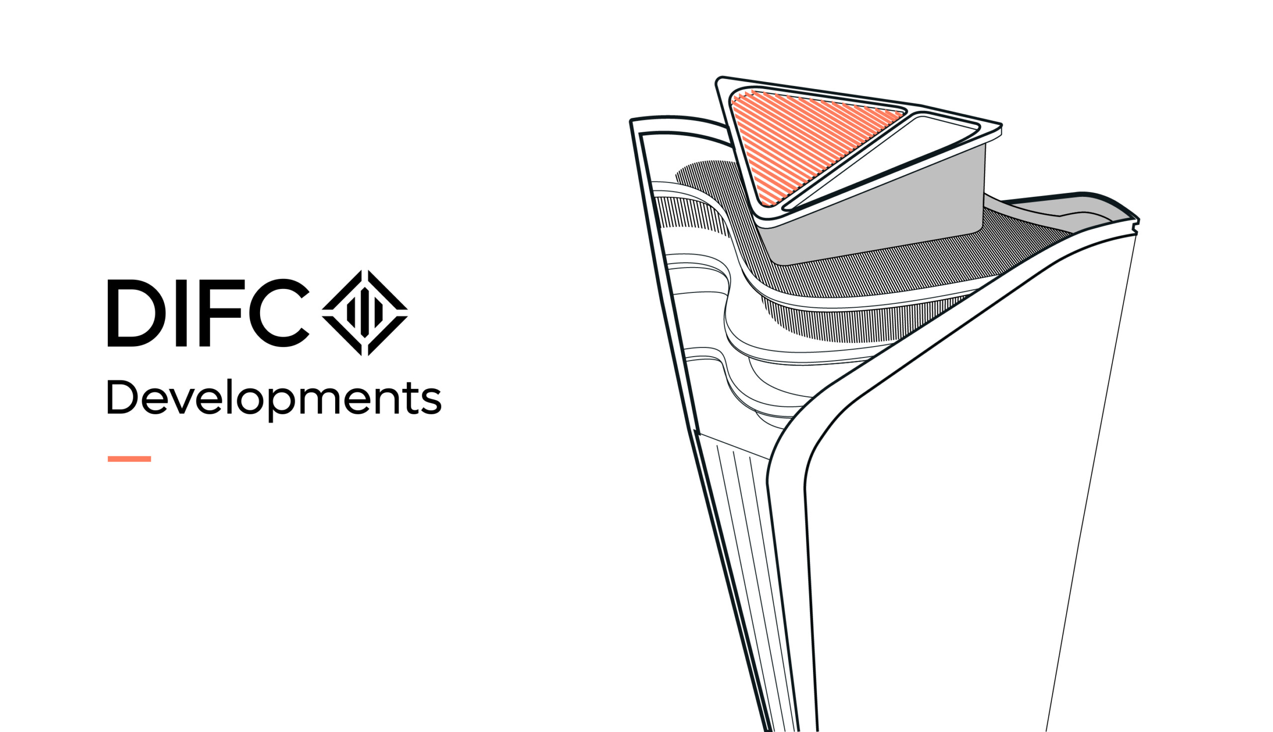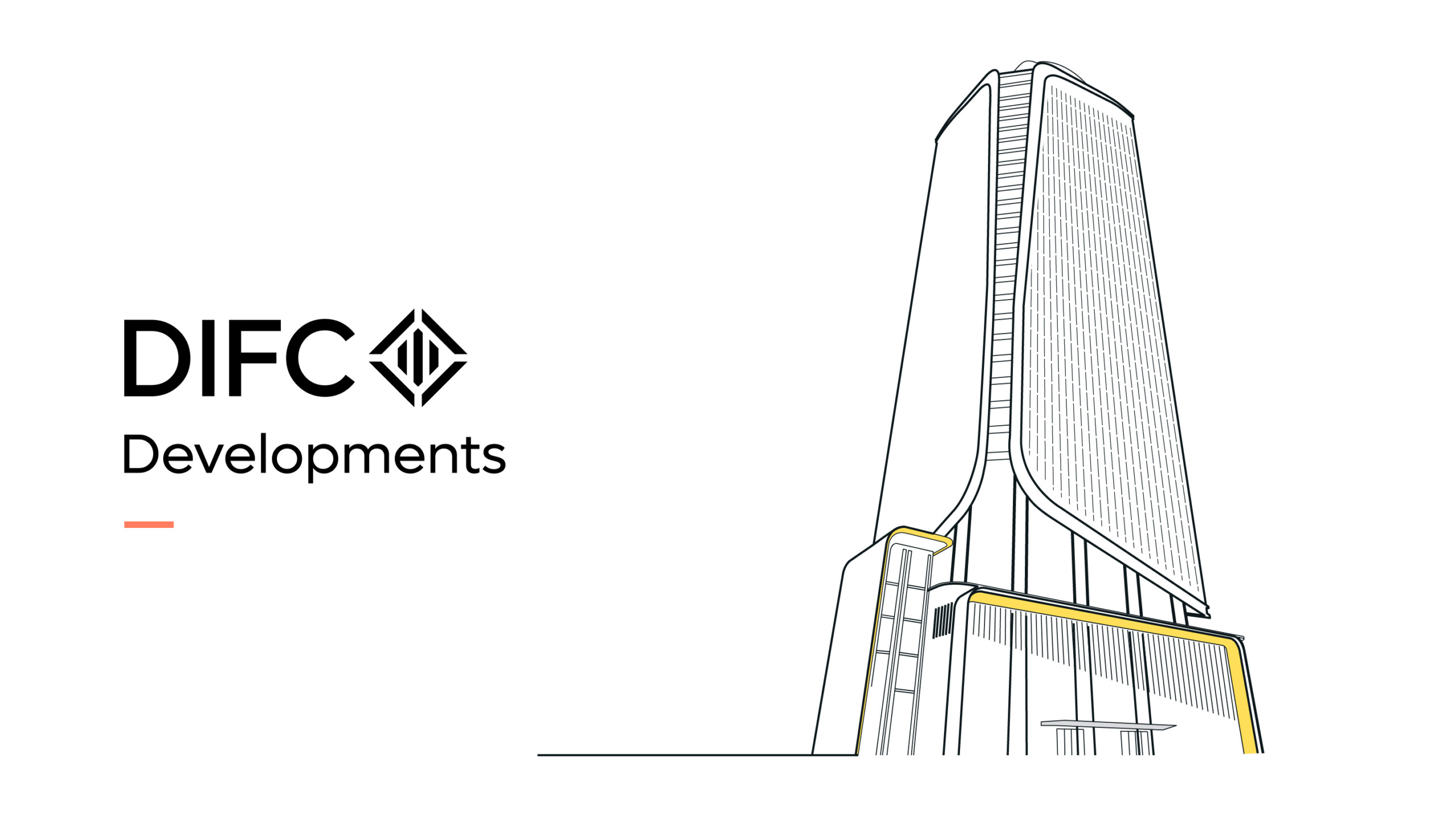 The typographic wordmark builds upon the DIFC brand – utilising its own unique lockup, by featuring the Developments word mark underneath DIFC.