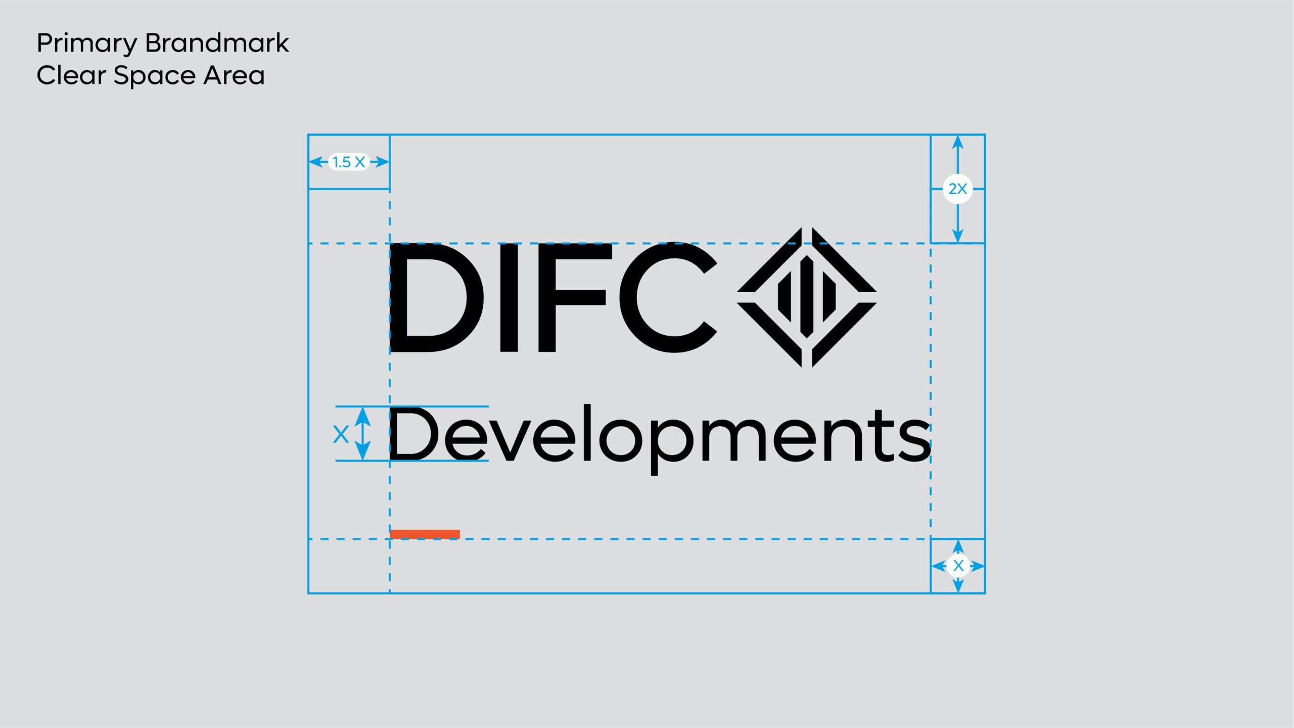 Clear space is equal to the CAP-height of the ‘Developments’ typography, shown using X and should be adhered to strictly whenever possible. The following is a breakdown of the clear space required around each brandmark variant.