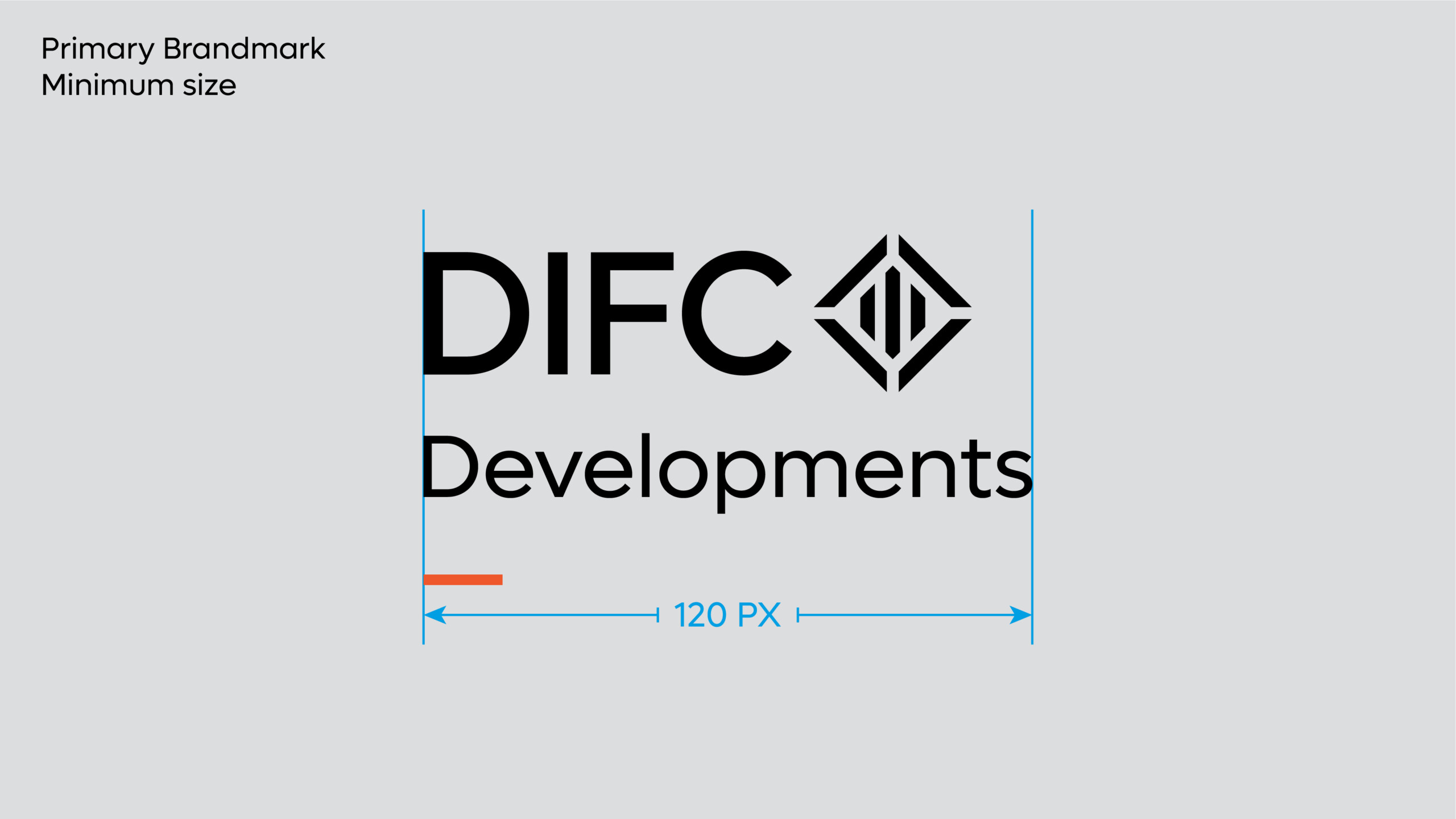The minimum size rules should be adhered to strictly. This will ensure the DIFC Developments brandmark is always legible across all applications. Visuals not shown to scale.