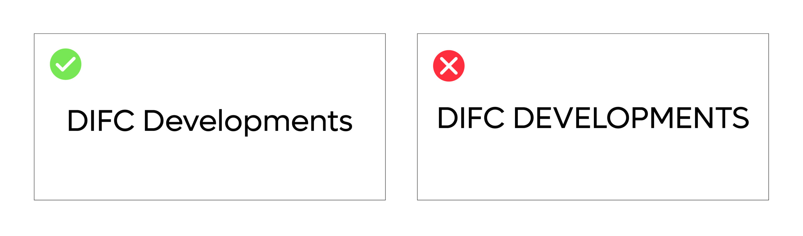 2. Capitalised sentence case creates a differentiation between DIFC Developments – when written in body copy.